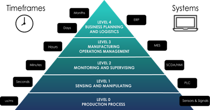 V sodobni proizvodnji je ključnega pomena učinkovita optimizacija procesov, ki jo omogočajo napredne digitalne rešitve podprte z umetno inteligenco. Sodobne digitalne rešitve vključujejo temeljno razumevanje sistemov SCADA (Supervisory Control and Data Acquisition), MES (Manufacturing Execution Systems) in ERP (Enterprise Resource Planning). SCADA sistemi omogočajo nadzor in zbiranje podatkov v realnem času, kar je ključno za spremljanje in upravljanje proizvodnih procesov. MES sistemi se osredotočajo na upravljanje in nadzor proizvodnje, medtem ko ERP sistemi združujejo vse poslovne procese v enoten informacijski sistem. Učinkovita integracija SCADA, MES in ERP sistemov omogoča nemoteno delovanje in povezovanje različnih proizvodnih in poslovnih funkcij. To pomeni, da se podatki in informacije nemoteno prenašajo po digitalizacijski arhitekturi (Slika 1), kar omogoča učinkovito odločanje in hitrejše odzivanje na dinamične spremembe.